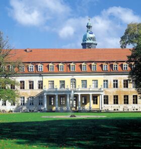 Wir parken zwischen Schloß und dem klassizistischen Marstallgebäude mit dem barocken Achteckhaus.