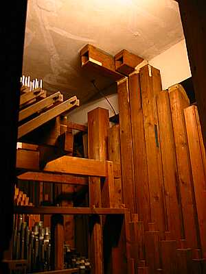 Die Kapelle ist nicht sehr groß, die hohen Basspfeifen der Orgel mußten schon mal geknickt werden.