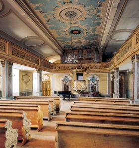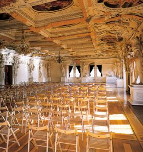 Der Blaue Saal mit dem weißen Flügel im Barockteil.