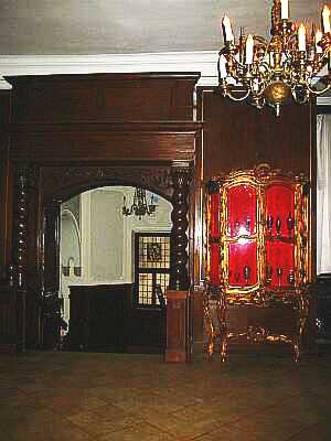 Ich vermute mal, dass sich 2004 der Eingang zum Schlossmuseum hier in der Halle des Barockteils befinden wird. Hier geht es auch in das Schlossrestaurant, das zu "hannoverschen" Normal- Preisen (Herbst 2003) einen 1. klassigen Service bietet. Wir sind da als auch als Motorradfahrergruppe willkommen und können auf Stilmöbeln etwas Essen oder Kaffee trinken. Die Preise sind für dieses Ambiente und dem Service wirklich sehr günstig. In der Halle waren einmal Bilder von dem Bauzustand vor der Renovierung mit den durch Bergsenkungen (Kaligrube) entstanden Rissen etc. zu sehen.